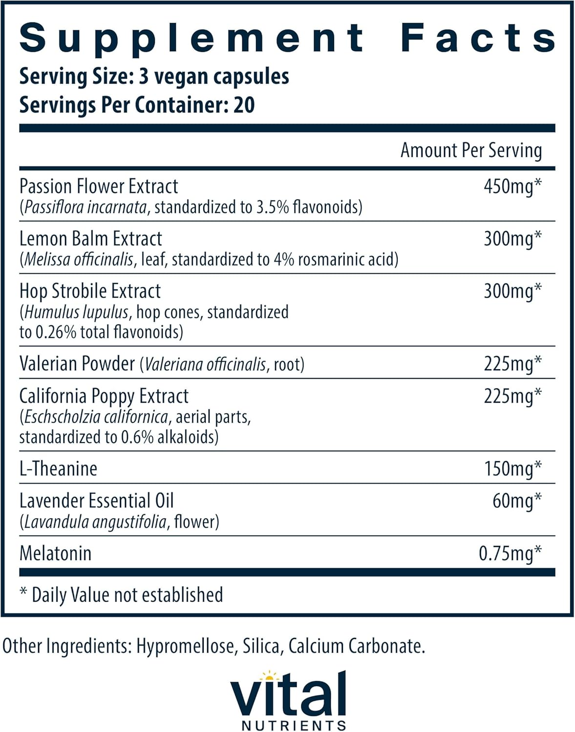 Vital Nutrients | Vegan Sleep Supplement | Promotes Relaxation and Restful Sleep | Natural for Adults | Soothing Lavender Scent | Gluten, Dairy, Soy Free | 60 Capsules