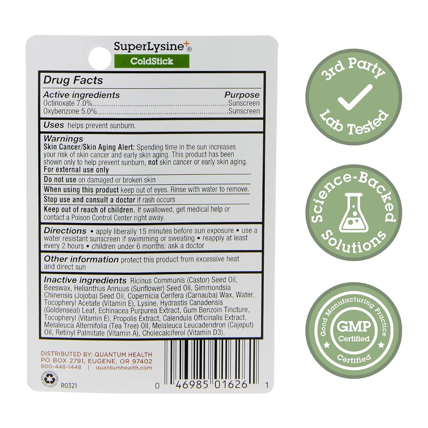 Quantum Health SuperLysine+ Colds tick Lip Sunscreen - Lysine Herbs & Nutrients Soothe & Moisturize Lips - Softens & Protects from the Sun - SPF 21 - Clear - 0.17 Ounce