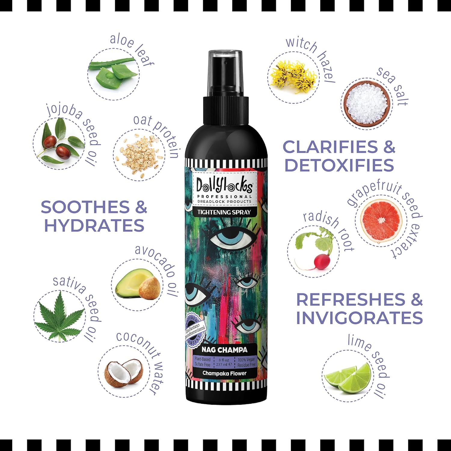 Dollylocks Tightening Spray – The Original Dreadlock Tightening & Residue-Free Loc Spray, Plant-Based, Vegan & pH-Balanced (Nag Champa Scent, 8oz)