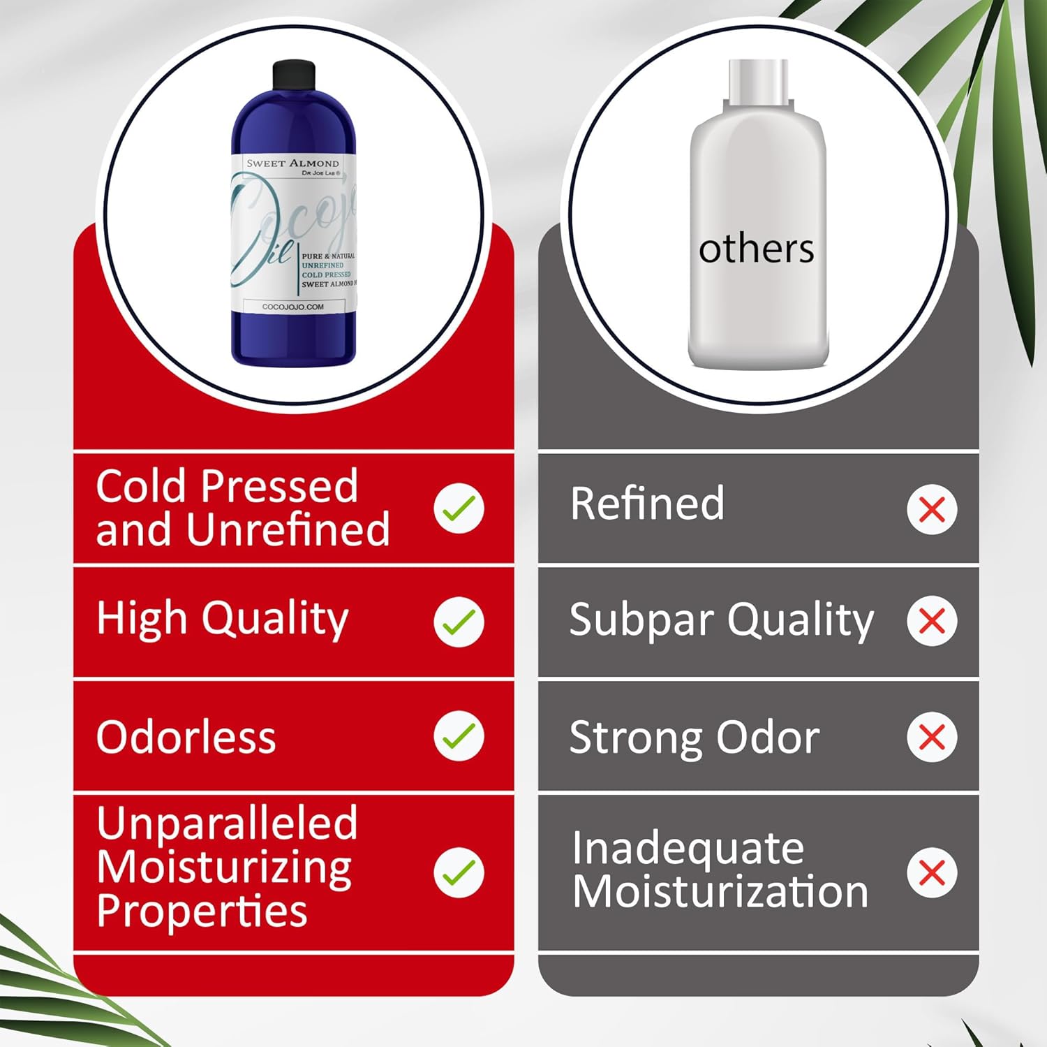 cocojojo Sweet Almond Oil - Face Skin Hair Cold Pressed 32 oz Natural Pure Massage Antioxidant Extra Virgin Unrefined