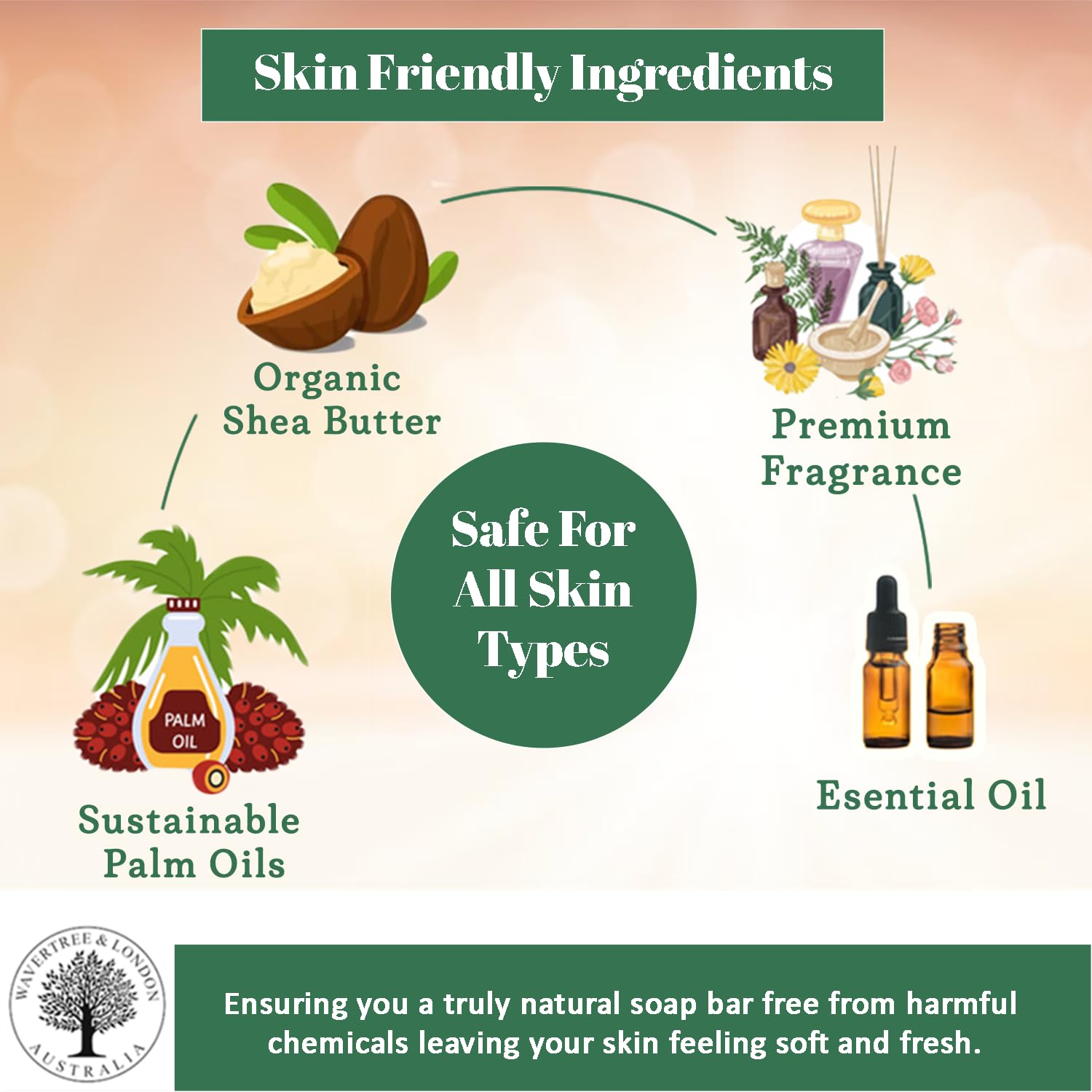 - 📋 Ingredients: Sustainable Palm oil, Palm Kernel Oil, Aqua (water), Certified Organic Shea Butter, Vegetable Glycerin, Essential Oils and/or Fragrance, Sodium Gluconate (natural sugar-based preservative), Sodium Chloride, Titanium Dioxide (food grade)