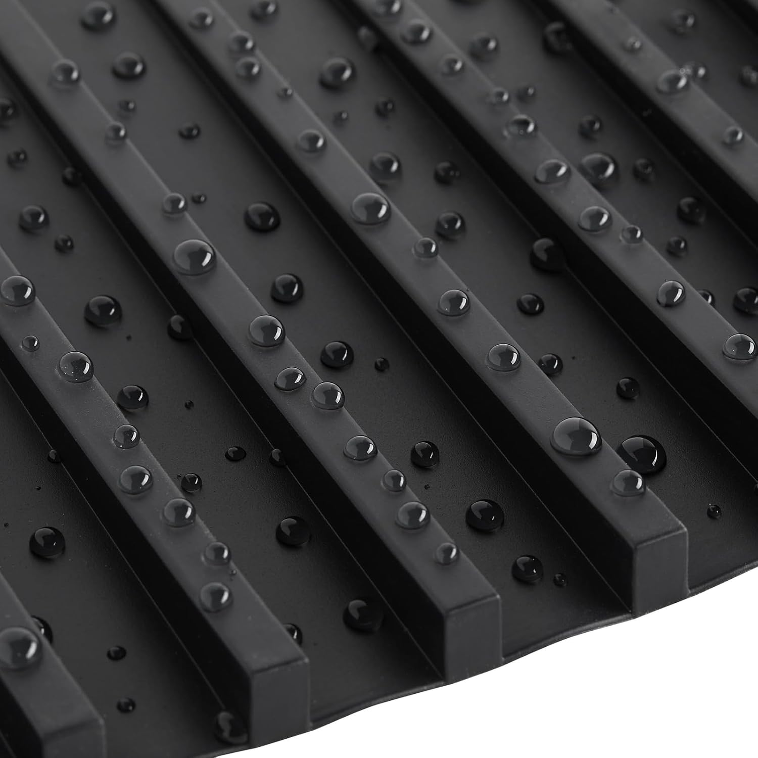 Talented Kitchen Self-Draining Silicone Dish Drying Mat - Sloped Silicone Countertop Drain Mat & Dish Drying Pad for Kitchen Counter - 15 x 8 in Black