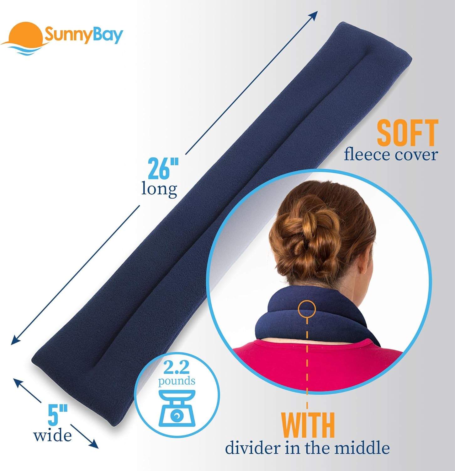 SunnyBay Microwave Heating Pad for Neck and Shoulders, 2.2 lbs 26 inch Long Versatile Microwavable Neck Wrap Warmer or Cool Pack, Hot or Cold Therapy to Relax Sore Muscles (Blue)