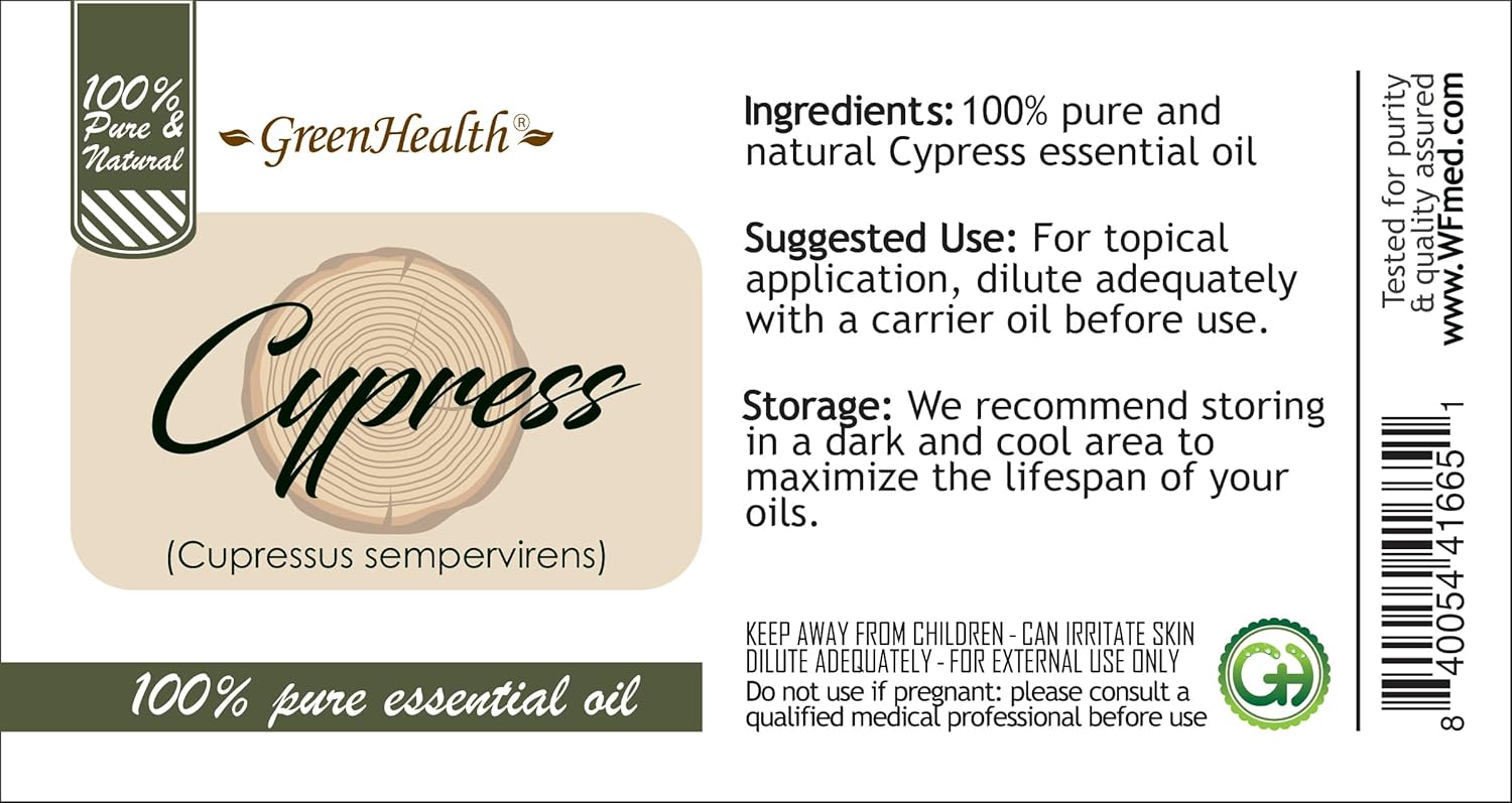 Cypress Essential Oil – 8 fl oz (237 ml) Aluminum Bottle w/Plug Cap – 100% Pure Essential Oil – GreenHealth