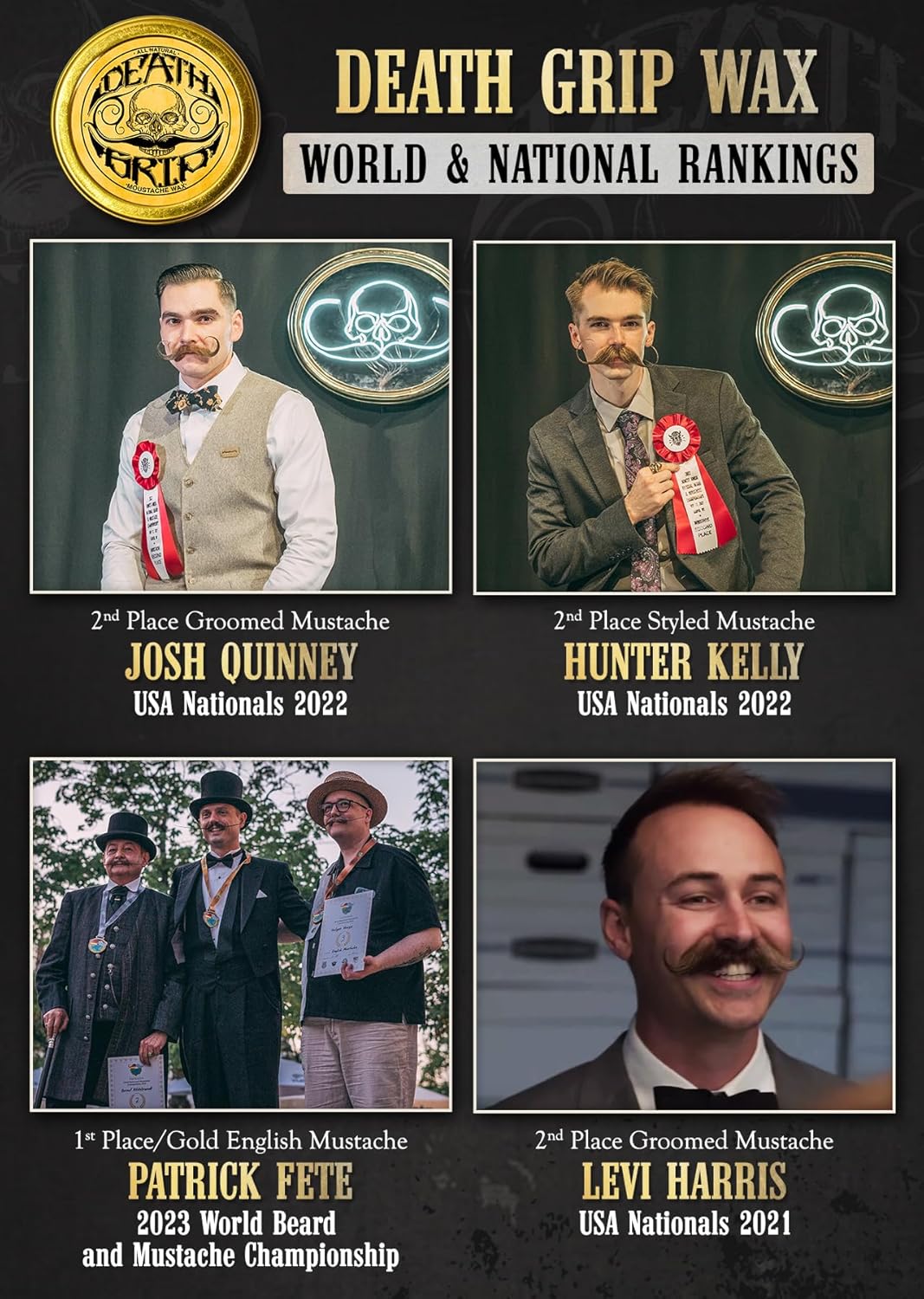 - DEATH GRIP MUSTACHE WAX GUARANTEE If you are not satisfied for any reason we will refund your money