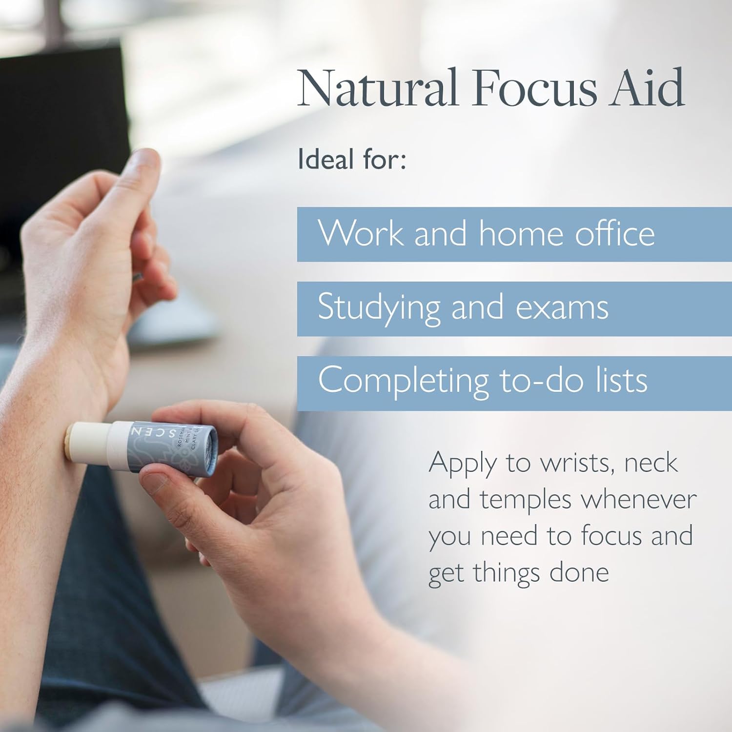 - Pocket-Sized Focus Aid Aromatherapy Balm – Scentered’s Focus aid balm aromatherapy pen boosts concentration with an invigorating scent. Perfect for work focus, school, or home office. A discreet essential oil inhaler and focus rollerball in one. 5g / 0.17 oz