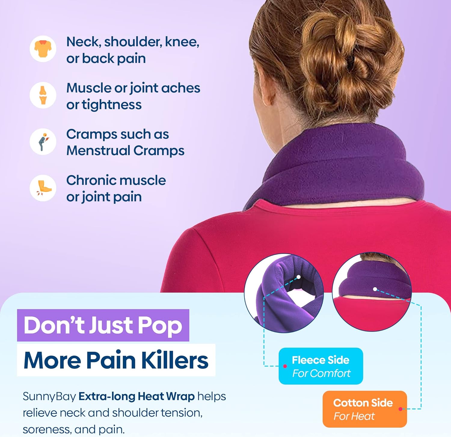 SunnyBay Microwave Heating Pad, Microwavable Heated Neck and Shoulder Wrap with Lavender, Soothing Pillow Hot & Cold Bean Bag, Aroma Warmer for Pain Relief, 26x5 Inches, 2.5 lbs, Purple