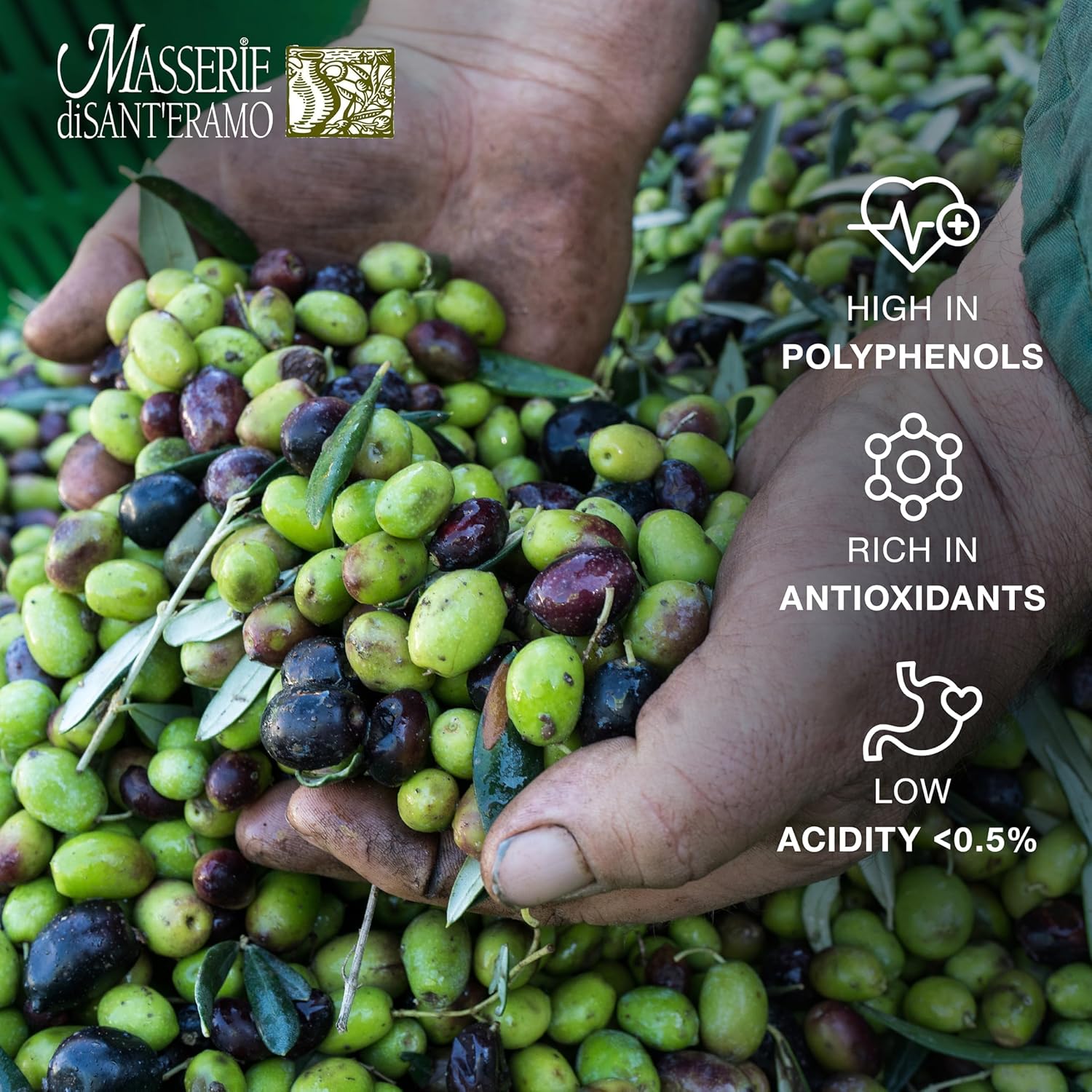 - Award-Winning EVOO - Produced from selected Ogliarola Barese olives and other premium olive varieties from the best groves of Apulia in Italy, this cold pressed olive oil reflects a commitment to quality and safety, ensuring a premium product for culinary use. It has been honored with first place in the Light Fruity EVO Oil category at the 2024 Nutrievo Awards.