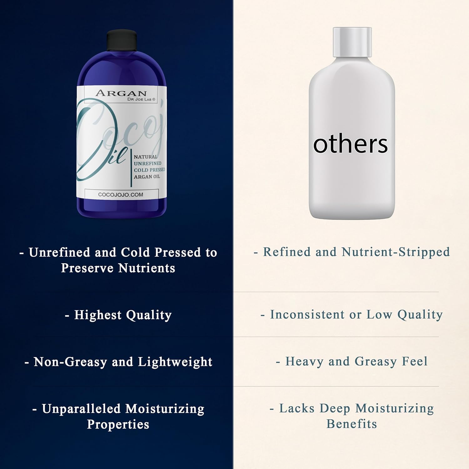 cocojojo Argan Oil - Cold Pressed 8 oz Pure Natural Extra Virgin Unrefined Argan Moroccan Marrakesh Oil Moisturizer Hair Face Lips Body Scalp Skin