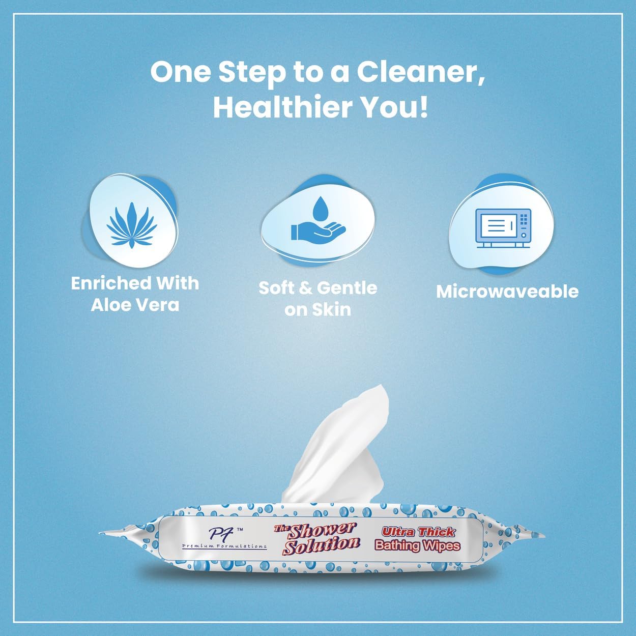 - ON THE GO BATHING SYSTEM - NO Shower No Problem Hygienic Rinse Free Bathing Anywhere & When Ever Needed , No Soap Required . Pack can be Microwaved + Environment Friendly !