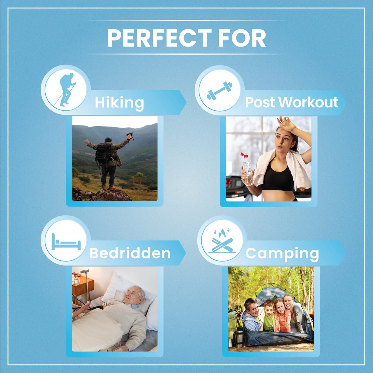 - MULTIPLE USES - Perfect for immobile Patients , Sports Refreshing , Camping & Hiking , Can be used over whole body !