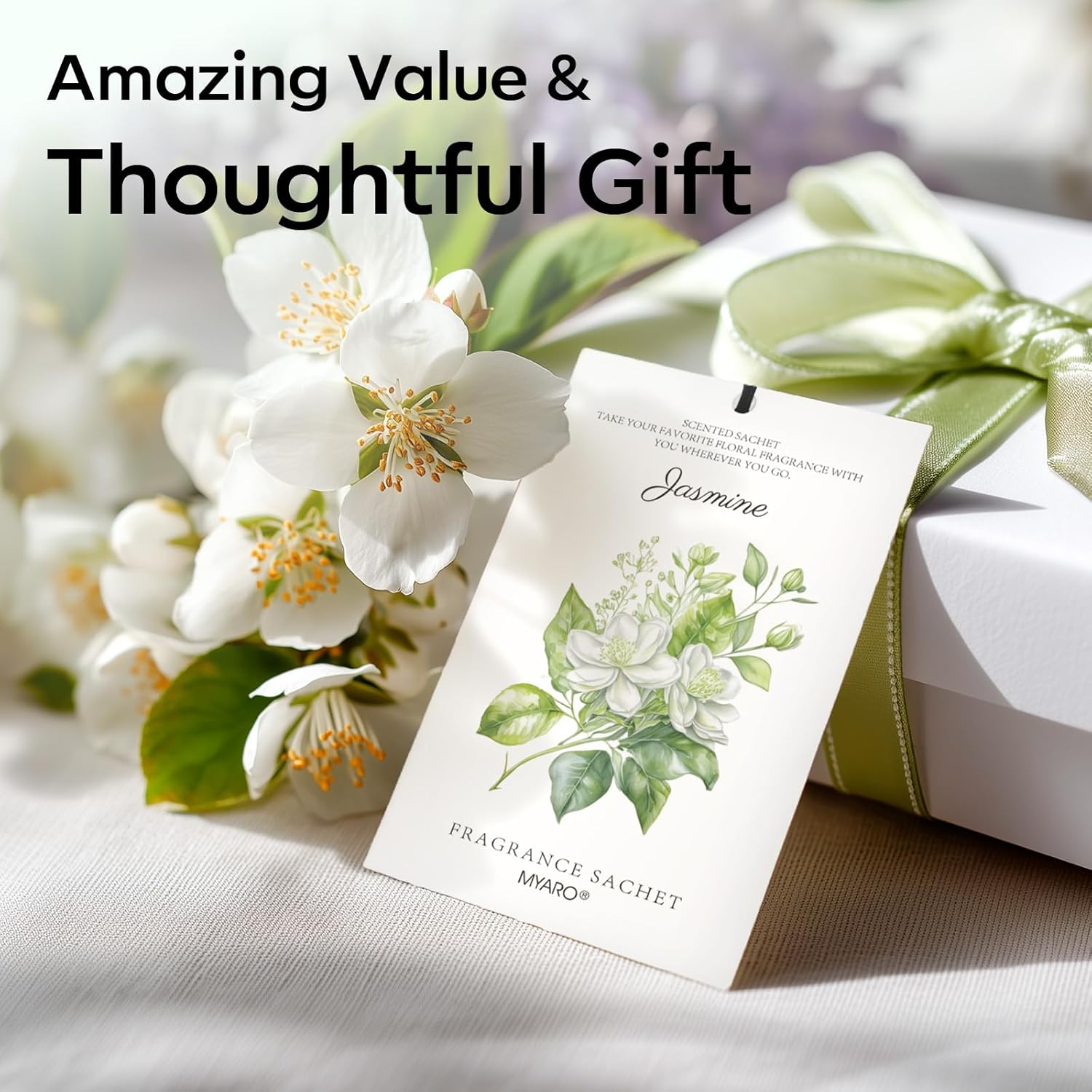 MYARO 12 Packs Jasmine Scented Sachets for Drawer and Closet, Long-Lasting Air Freshener Sachets Bags Drawer deodorizers Fresh Scents, Home Fragrance for Lover