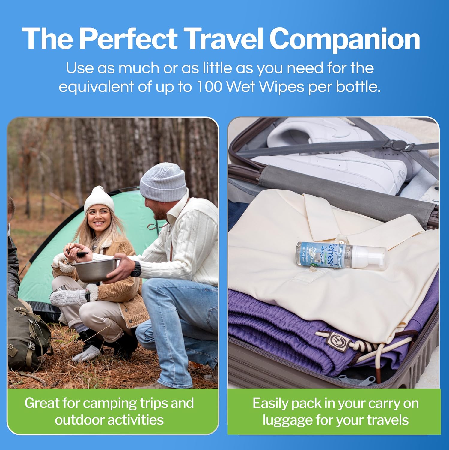 Refresh Liquid Wipe: Toilet Paper Foam. Eco-Friendly Wet Wipe Alternative with Witch Hazel and Aloe. Plumbing and Septic Safe. 250ml/50ml (10.14 Fl Oz Total) Combo Pack