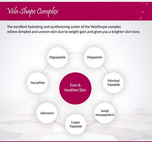 - VELA SHAPE SKIN TIGHTENING GEL FOR LIPOLYTIC EFFECT: infused with peptides, adenosine and botanical extracts, renowned for its skin-plumping properties, helps alleviate cellulite surface by strengthening the skin barrier. Produces a tight lifted appearance and resilient smooth skin. The powerful lipolytic (slimming fat reducing) action gel visibly slims, sculpts, and tones your body because it triggers fat breakdown and slims the circumference of the thighs, legs, and waist.