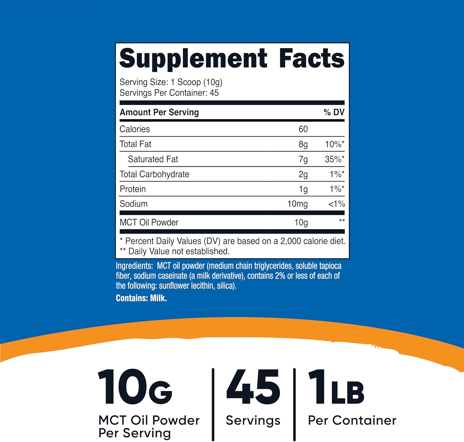 - 1LB of Hiqh Quality MCT Oil Powder Per Bottle