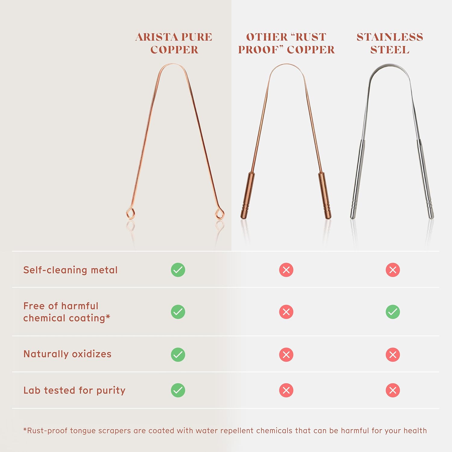 Arista Copper Tongue Scraper for Adults & Kids – 100% Pure Copper Tongue Cleaner – Extreme Bad Breath Treatment for Adults, Oral Detox & Hygiene – 1 Pack with Travel Pouch