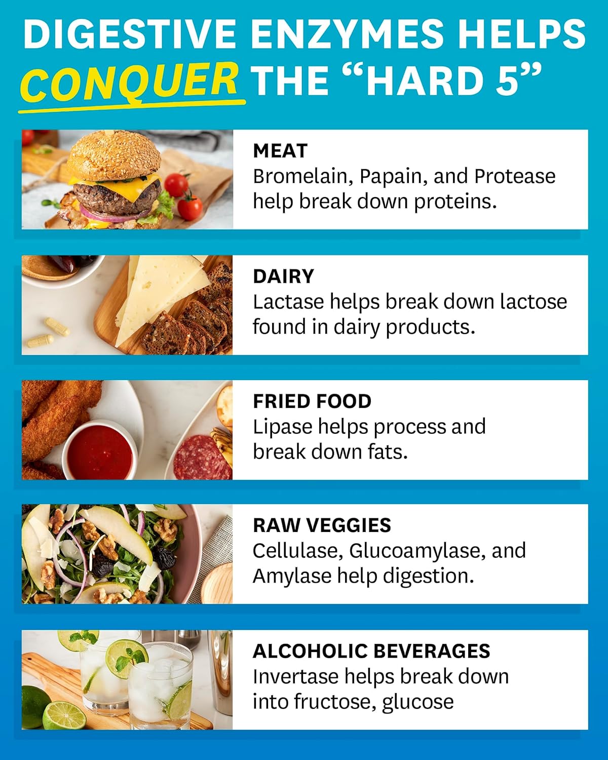 - Fast-Acting Enzymes – Featuring powerful enzymes like bromelain (from pineapple) and papain (from papaya), this blend starts working immediately to break down food up to 39% more completely, easing indigestion for rapid, noticeable relief.