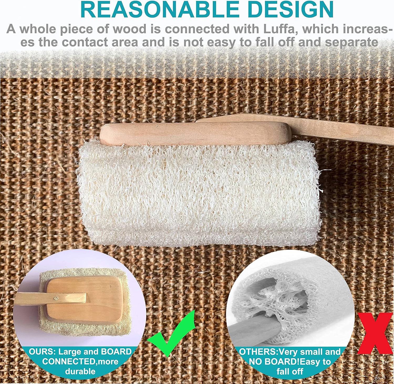 2 Pack Natural Exfoliating Loofah luffa loofa Bath Brush On a Stick - with Long Wooden Handle Back Brush for Men & Women - Shower Sponge Body Back Scrubber