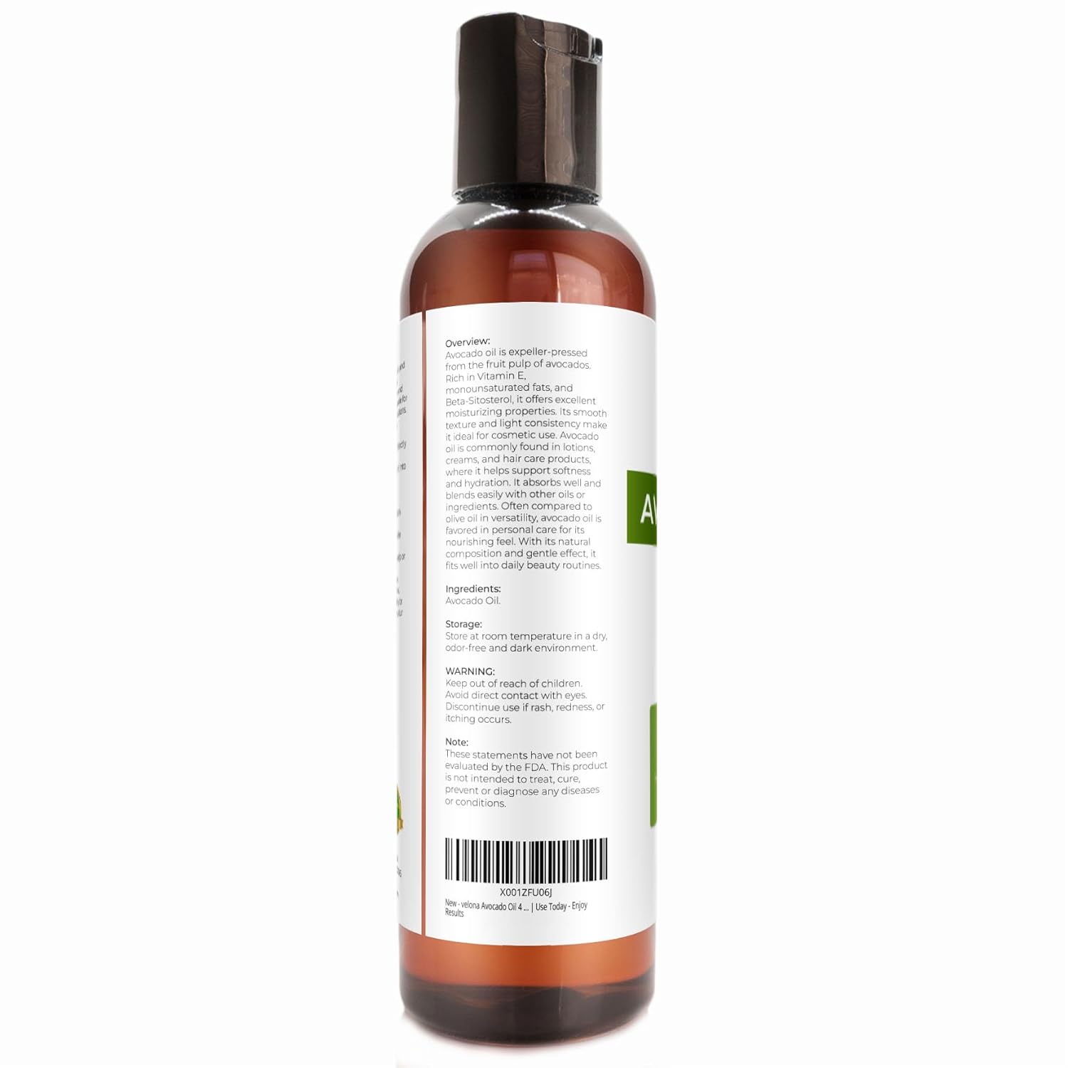 velona Avocado Oil 4 Fl Oz | 100% Pure and Natural Carrier Oil | Expeller-Pressed | Hair, Body and Skin Care | Use Today - Enjoy Results