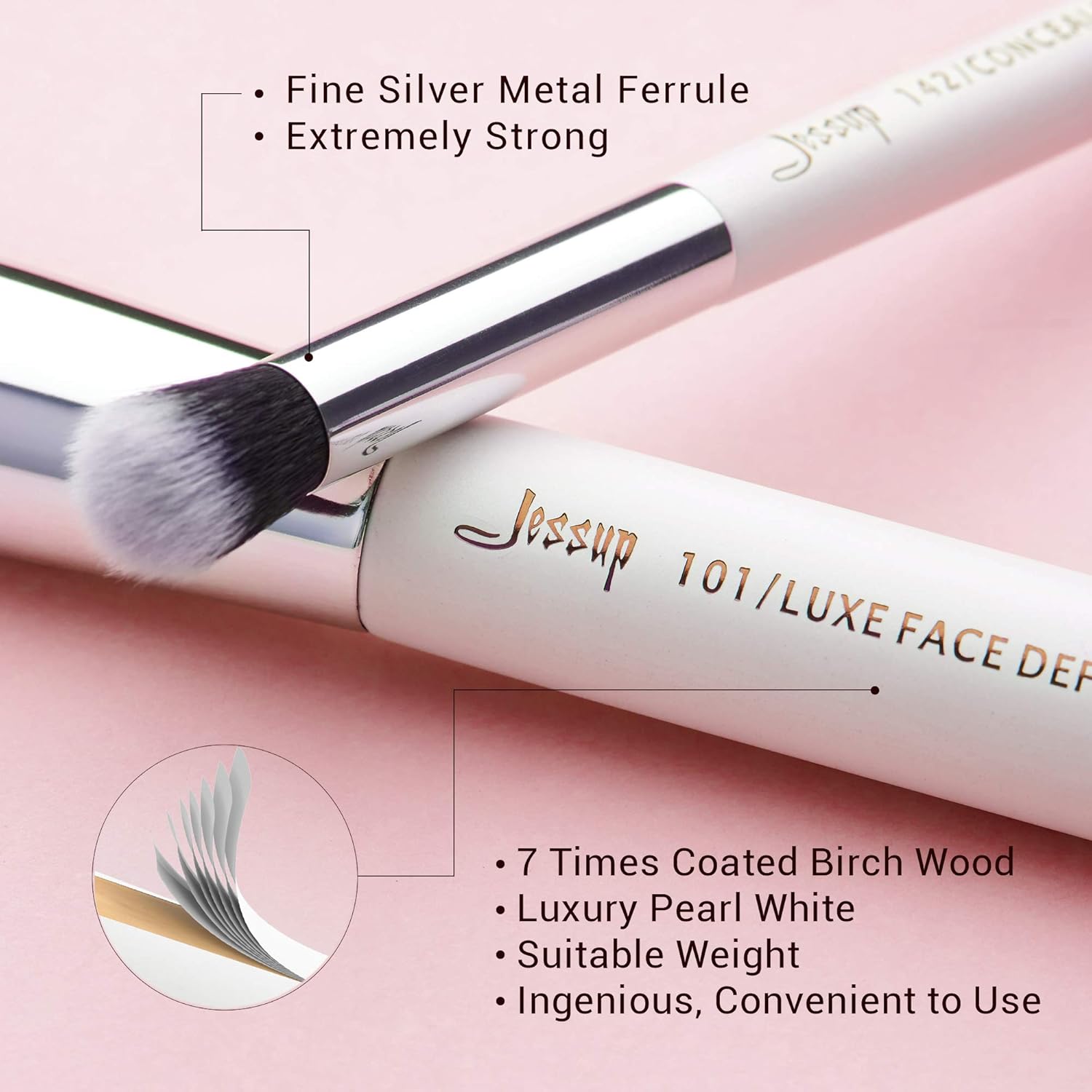 Jessup Brand 25pcs Professional Makeup Brush Set Beauty Cosmetic Foundation Powder Blusher Eyeshadow Blending Highlight Concealer Natural-Synthetic Hair Brushes Set (Pearl White/Silver)