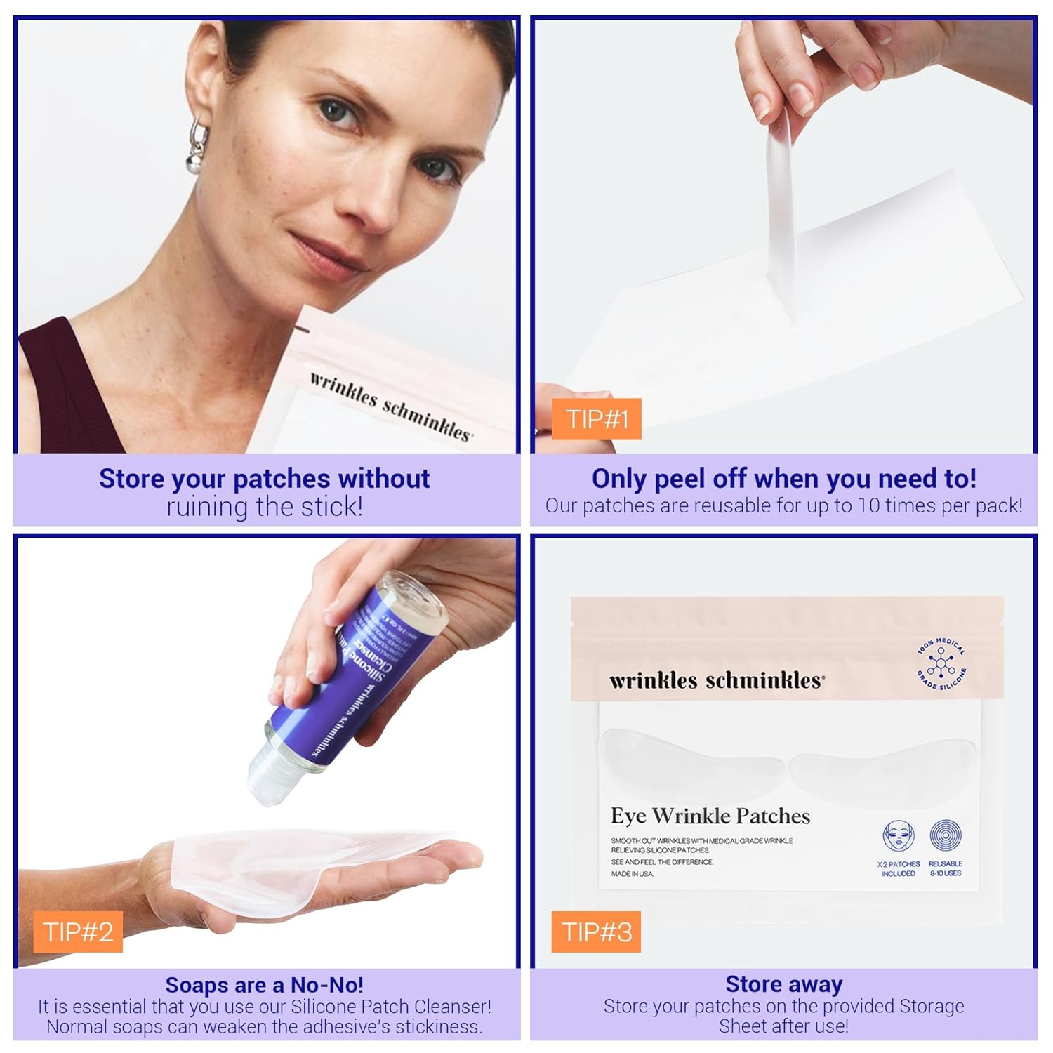 Wrinkles Schminkles Under Eye Wrinkle Patches | Smooth Eye Wrinkles, Crows Feet & Dark Circles Overnight | 1 Pair Reusable Medical Grade Silicone Patches