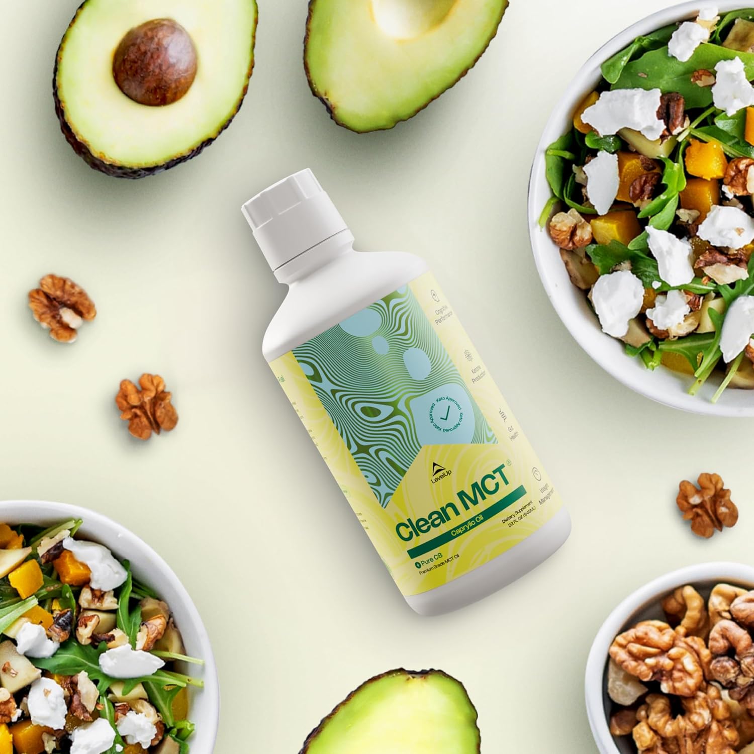 LevelUp Clean MCT Oil - 100% Caprylic C8 for Energy, Focus, Weight Management, Gut Health, Brain Superfuel - Keto Supplement for Ketogenic Coffee and Ketones - Non-GMO (32 oz)