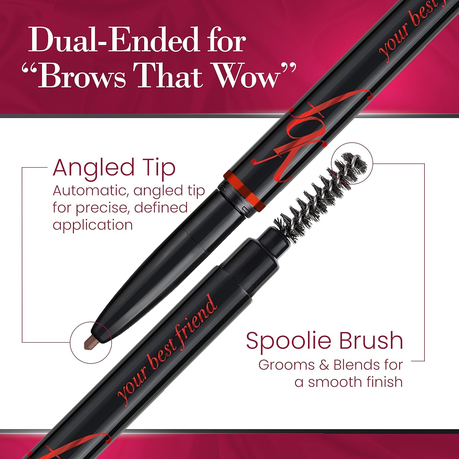 - FabYOUlous Features -ybf's brow shaper is a dual-ended pencil with a spoolie brush that helps you create natural-looking, perfectly groomed brows every time! Specially formulated for easy eyebrow tint application in short, customizable, feathery strokes. Glides on smoothly and there's no need for sharpening - just twist, apply, and get ready for an amazing new you.