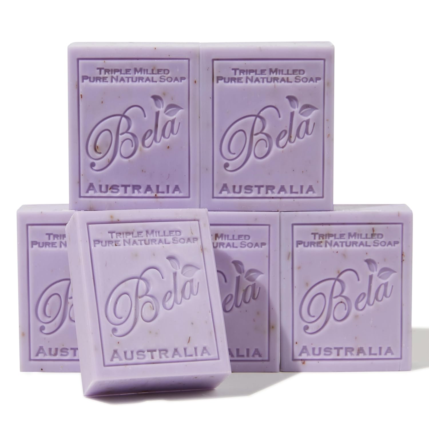 BELA Lavender Soap Bars 3.3 OZ Pack of 6, French Triple Milled Bar Soap with Organic Shea Butter, Lavender and Flower Scented Soap, Made in Australia