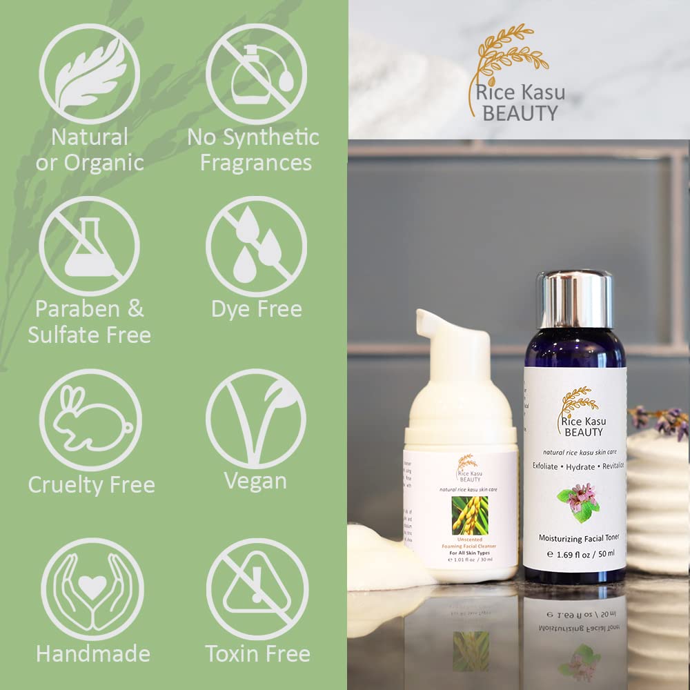 - Beneficial acids from rice kasu in Unscented Foaming Cleanser naturally exfoliate for a deeper cleanse and leave skin feeling silky