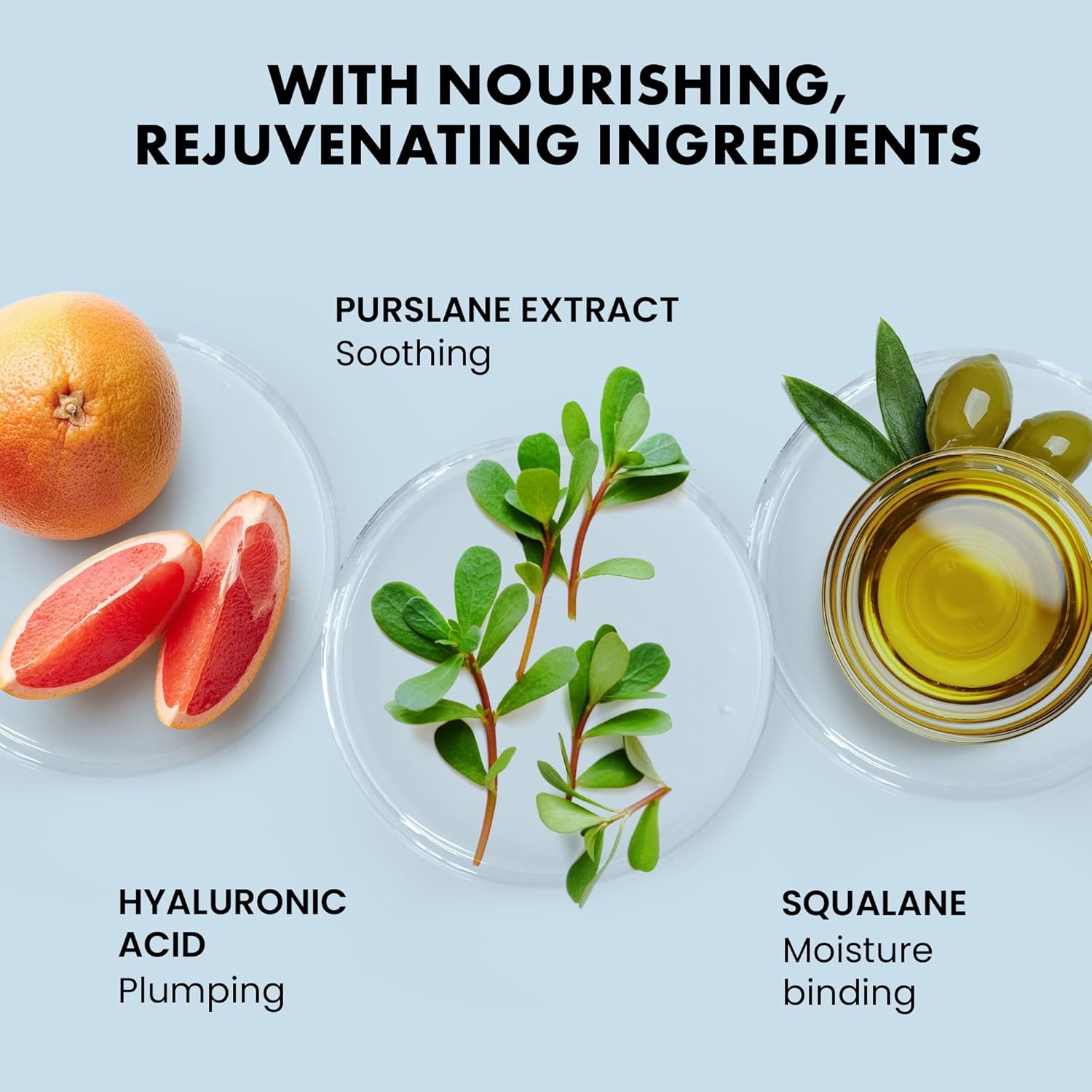 - 💪 𝗣𝗢𝗪𝗘𝗥𝗙𝗨𝗟 𝗣𝗟𝗨𝗠𝗣𝗘𝗥𝗦 + 🛡️ 𝗦𝗞𝗜𝗡 𝗕𝗔𝗥𝗥𝗜𝗘𝗥 𝗦𝗨𝗣𝗣𝗢𝗥𝗧: Ultra-hydrating hyaluronic acid binds with moisture to plump skin and fill lines, while purslane, squalane and oat extract help to de-puff, lift saggy skin, restore suppleness, and strengthen the delicate skin around the eyes.