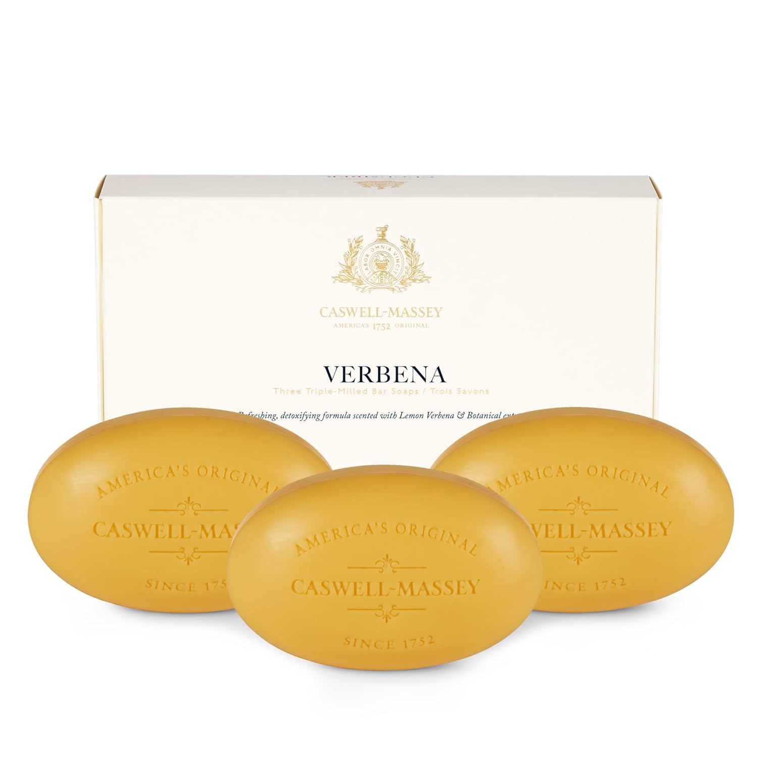 Caswell-Massey Castile Bar Soap, Womens Body Wash, Hand Soap, and Face Wash, Moisturizing Natural Body Soap for Bath or Shower, Verbena, 3 Bar Gift Set
