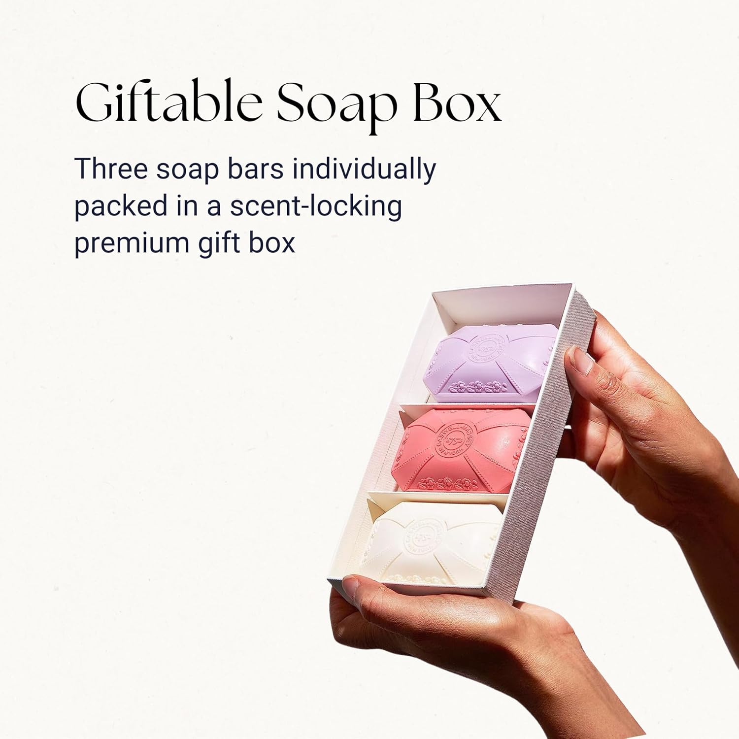 - The Perfect Giftable Soap Set: This natural soap set comes in a three-pack and is a great gift for a birthday, holiday, or any other occasion. Enjoy its rich lather on the face, body and as a luxury hand soap.