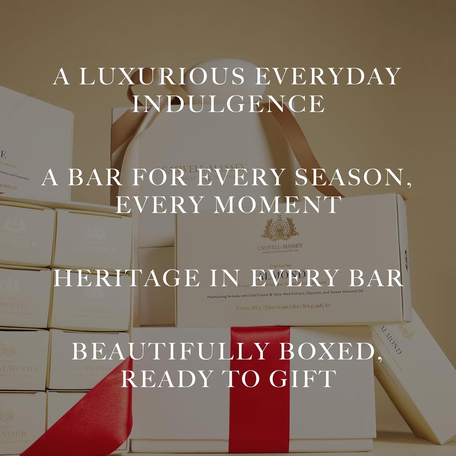 Caswell-Massey Men’s Bar Soap Gift Set - 2571, Woodgrain & Sandalwood - Moisturizing Triple-Milled Body Wash Bars for All Skin Types, Plant-Based & Essential Oils Formula, Made in USA, 3 x 5.8 oz