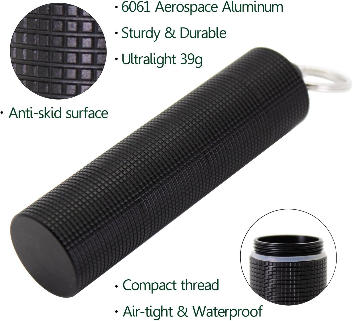 - ★ Waterproof - Super precision CNC cutting craft, compact thread and Screws on securely, never pops open. The rubber gasket keeps your pills always dry even completely immersed in water.
