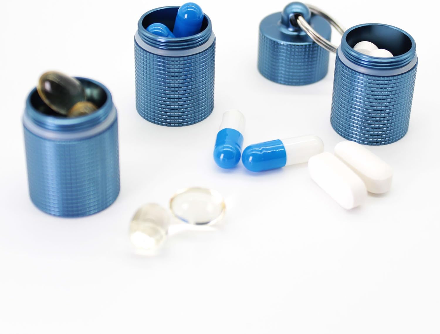 PPFISH Portable Daily Pill Case, 3 Compartments Anti-Skid Aluminum Alloy Waterproof Pill Box Dispenser, Small Pocket Pill Container, Keychain Pill Fob, Travel Pill Holder for Men Women
