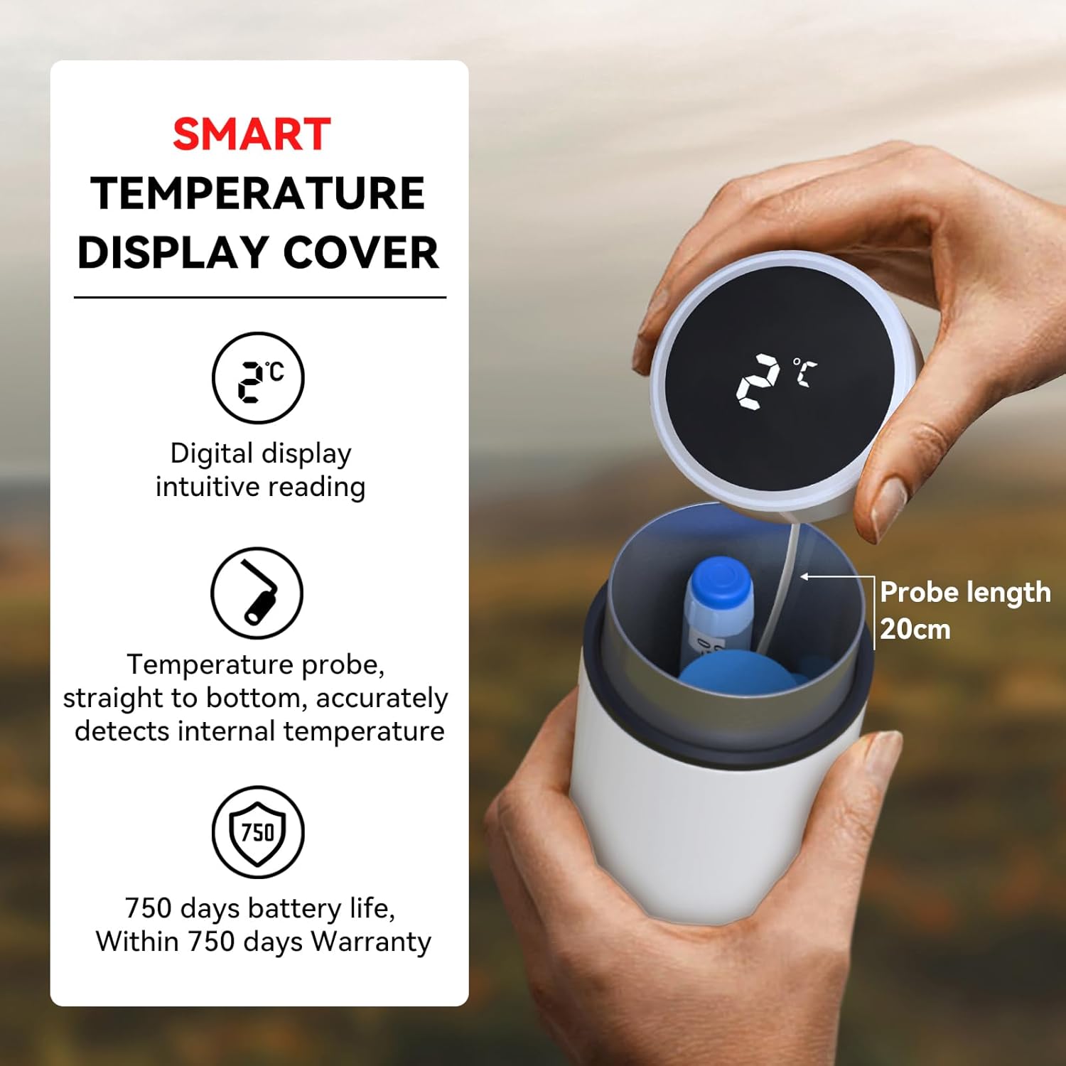 - What are the advantages of a digital display thermometer : The 20 cm(7.87 in) long temperature sensor can detect the temperature at the bottom of the cooler cup, which is the most accurate temperature detection method on the market. With a touch screen display, you can check whether the internal temperature of the cooler is within a safe range at any time when traveling or doing outdoor activities, and enjoy your trip more safely
