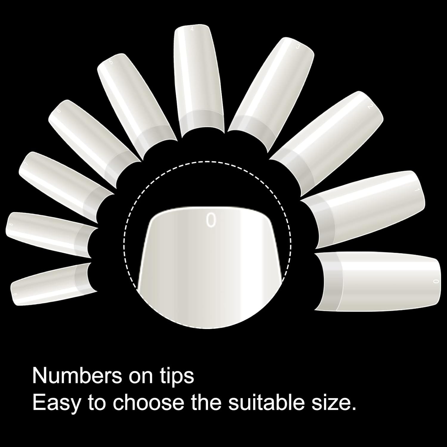 - 【500 Pcs False Nail Tip with 10 Sizes】krofaue 500pcs french false nails tips offers 10 different sizes with 50 french nail tips of each size that fit most fingers, which is individually numbered 0-9, so we're easy and convenient to choose the suitable size