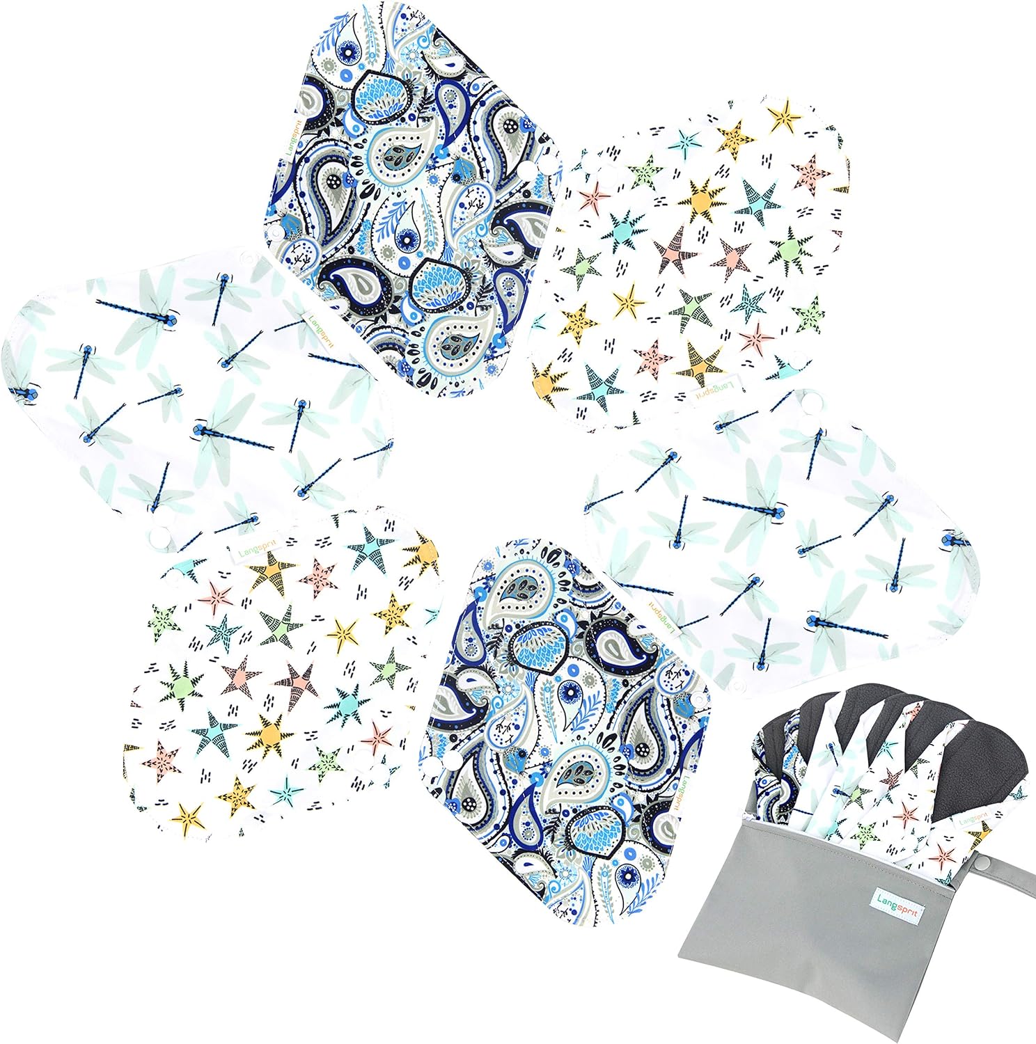 7pcs Set 1 pc Mini Wet Bag +6pcs Absorbent Reusable Sanitary Pads/Washable Cloth Menstrual Pads (L,Elegant)…