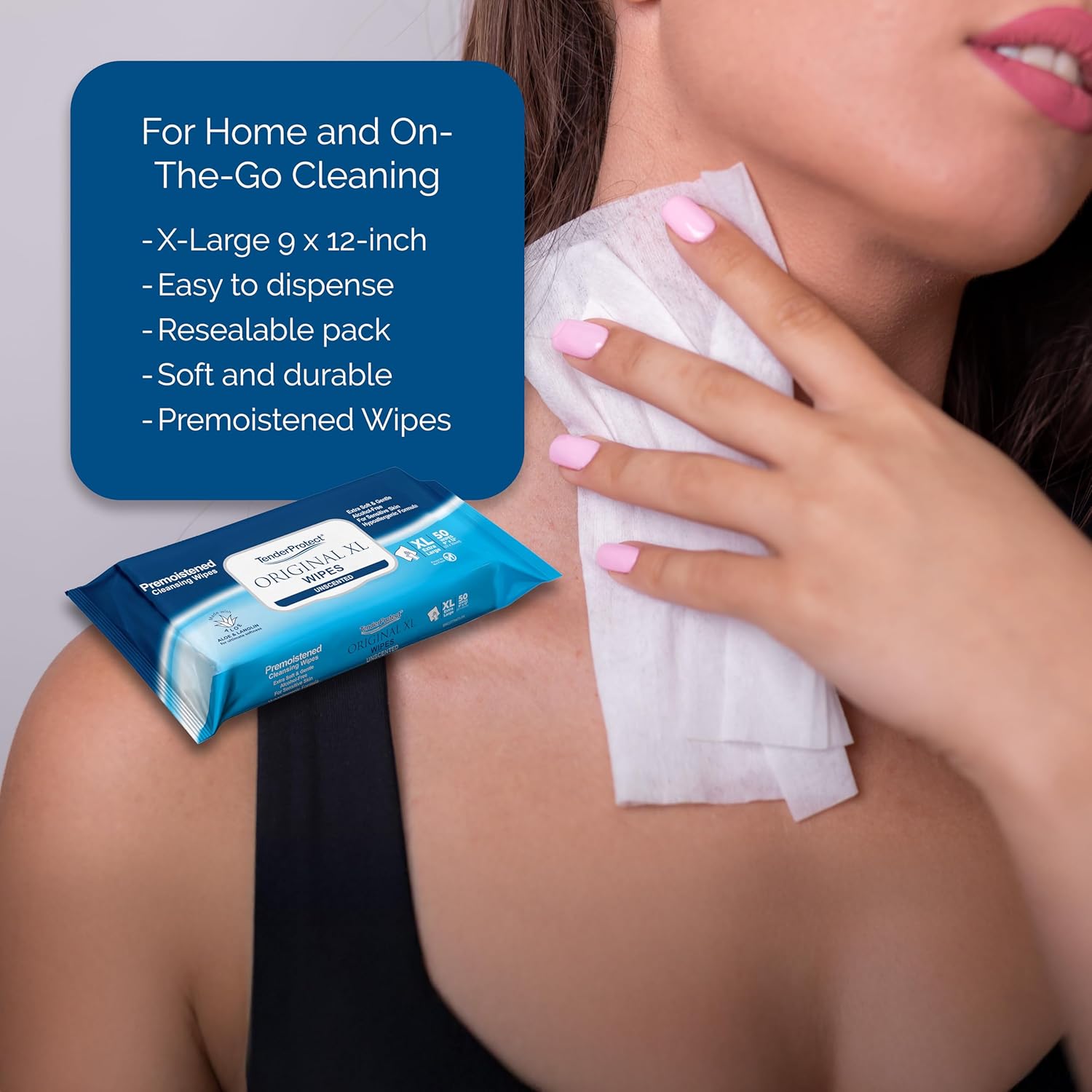 TenderProtect® Original XL Premium Adult Wipes (600 Ct), Extra-Large 9"x12" Wet Wipes with Aloe, Wash Cloths for Babies & Elderly, Incontinence, Hands & Body Cleaning