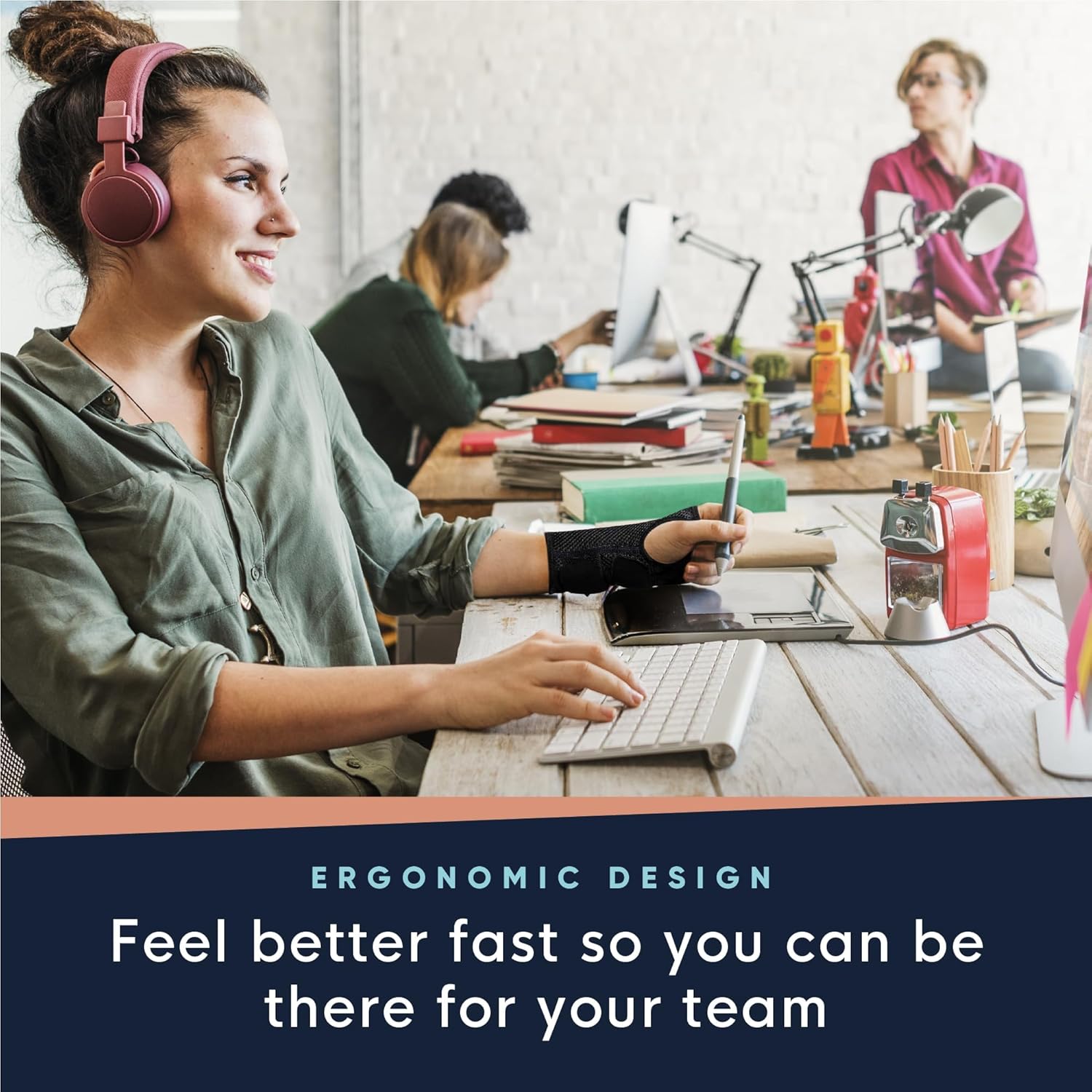 - WORK WHILE YOU HEAL. You can keep on typing away on the keyboard and receiving pain relief while working. This sleeve holds your hands and wrists in the correct position, providing just enough restriction to prevent repeated strains and tears. During your therapy with this wrist brace for carpal tunnel, you may experience some reduction in skills that require the ability to roll your wrist, like in playing tennis or golf.