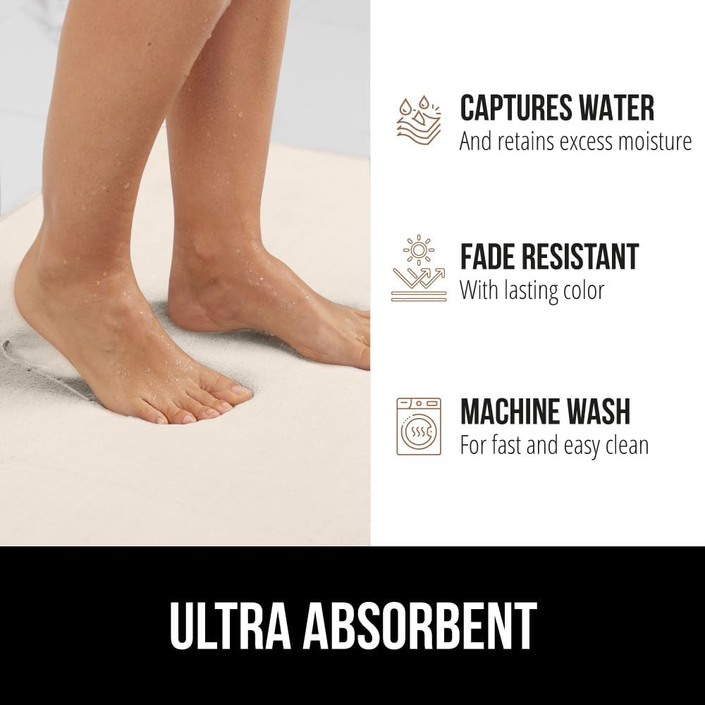 GORILLA GRIP Thick Memory Foam Toilet Rug for Bathroom, Square Shaped Washable, Soft Absorbent Velvet Topside Floor Mats, Machine Wash, Cushioned Luxury Rugs for Bath Room, 22.5x19.5, Cream
