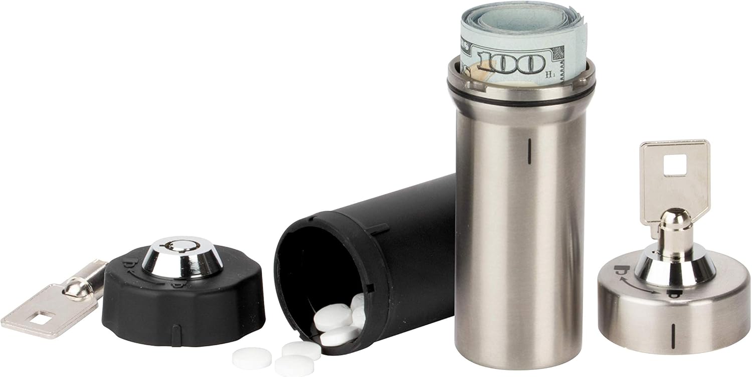 Ezy Dose Pill Box and Medicine, Vitamin Container, Safe for Money & Travel Items, Stainless Steel, 2 Keys with Lock