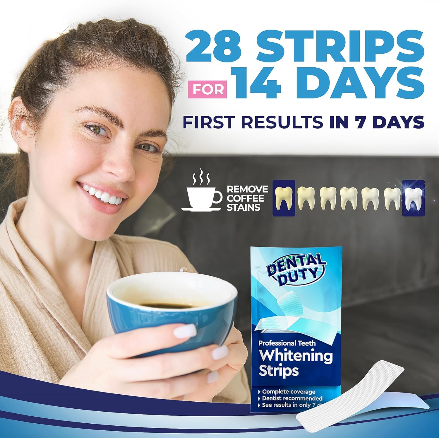 Dental Duty Teeth Whitening Strips – 28pcs Vegan White Strips for Teeth Whitening – Enamel-Safe Teeth Whitener – Removes Coffee & Tea Stains – Non-Toxic, Sensitivity-Free Teeth Whitening Kit.