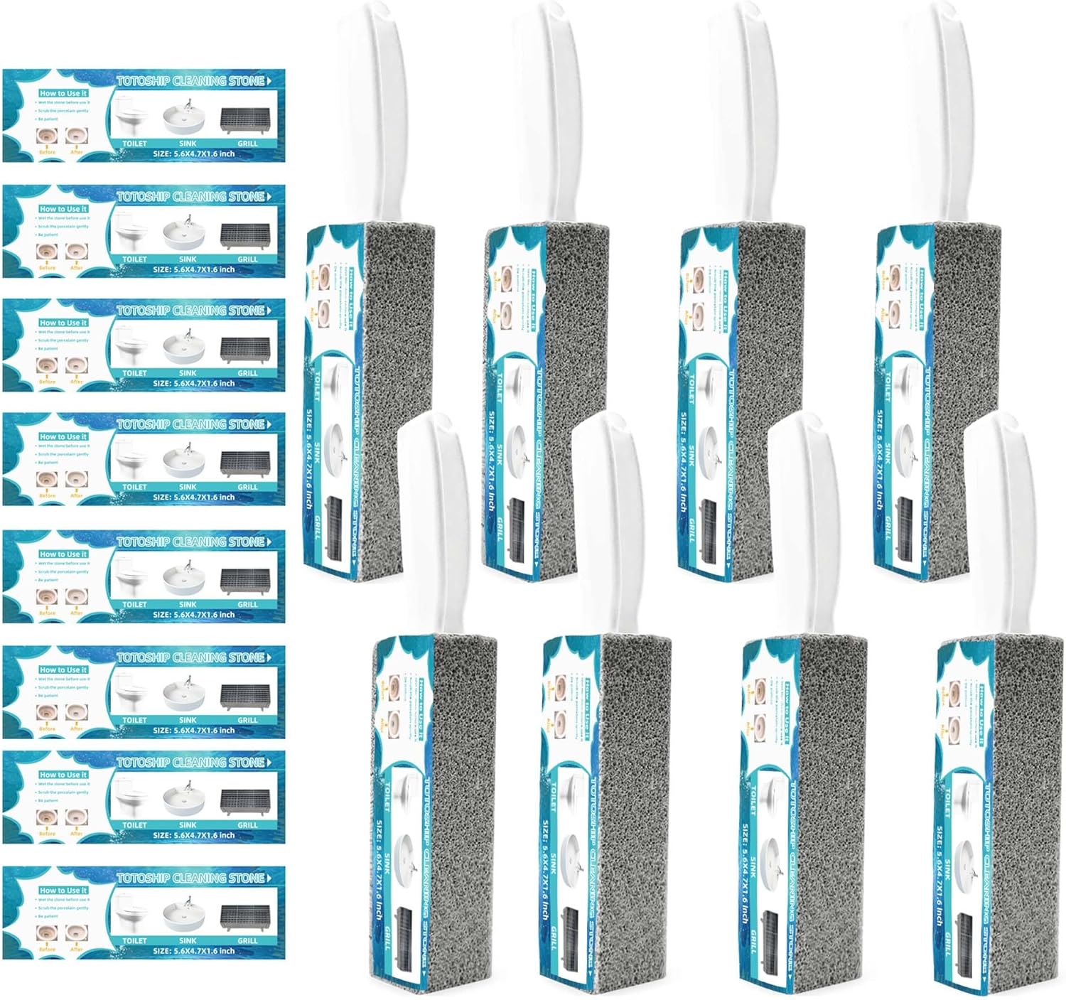 8 Pack Toilet Pumice Stone with Handle, Pumice Stone for Toilet Cleaning, Toilet Stone for Household Cleaning, with 8 Pack Label Manuals