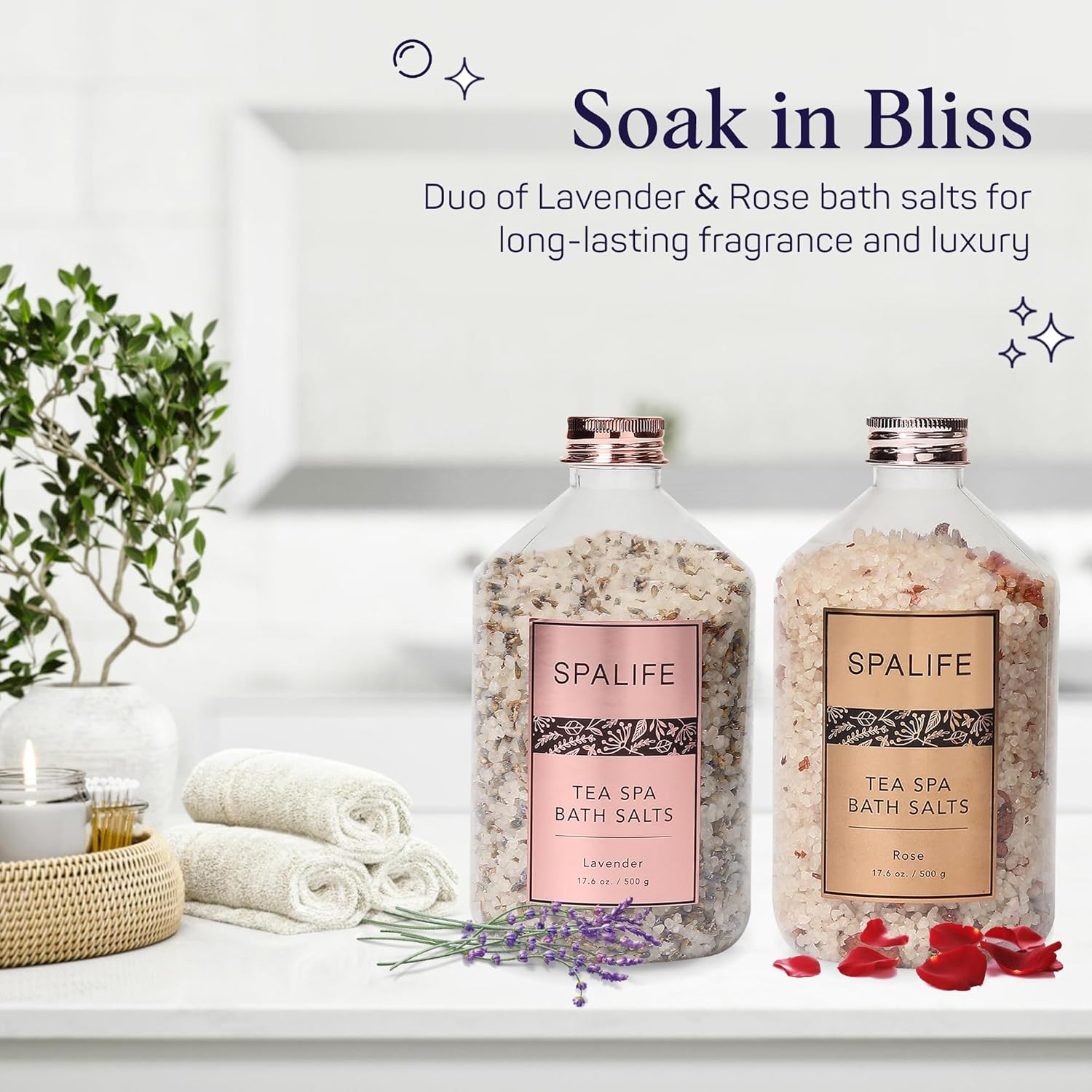 - EXPERIENCE PETAL-INFUSED LUXURY: Indulge in a luxurious bath experience with SpaLife's Petal-Infused Bath Salts. Formulated with dried petals, these salts rejuvenate and cleanse your skin, creating an aromatic and pampering oasis right in your tub.