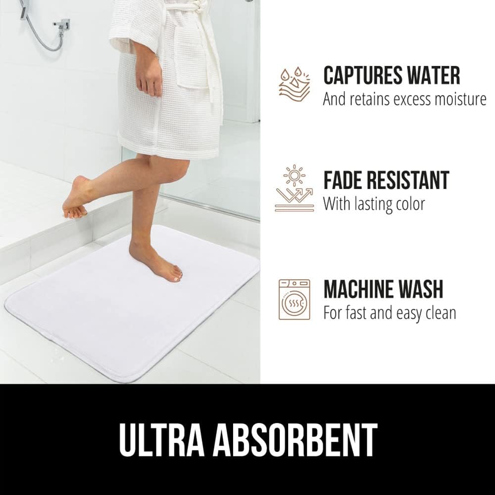 GORILLA GRIP Thick Memory Foam Bath Rugs, Soft Absorbent Velvet Bathroom Mats, Durable Dots on Underside, Machine Washable Bathmat, Carpet Rug Room Decor for Shower Floor, 42x24 Mat, White