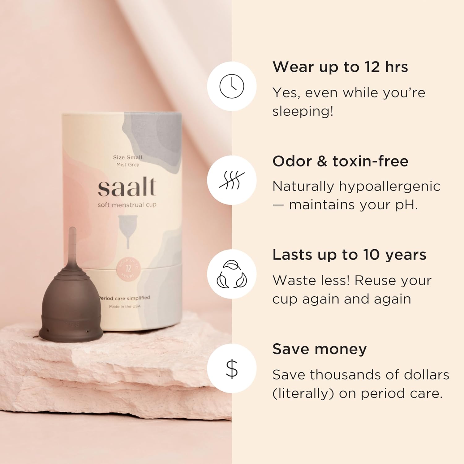 - SAFE & REUSABLE: Made in the USA from 100% medical-grade silicone that is BPA-free, latex-free, cruelty-free, and hypoallergenic. Reusable design helps cut down on single-use period products and supports more sustainable choices.