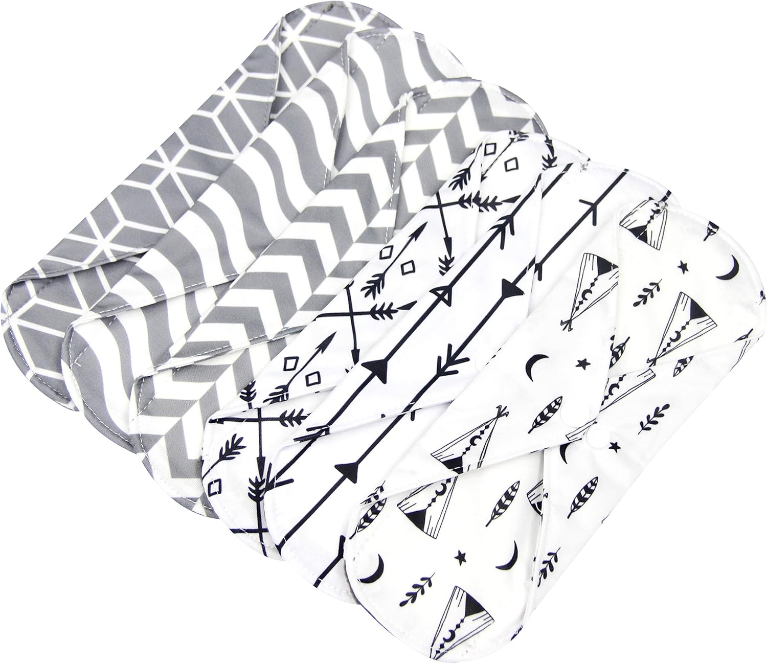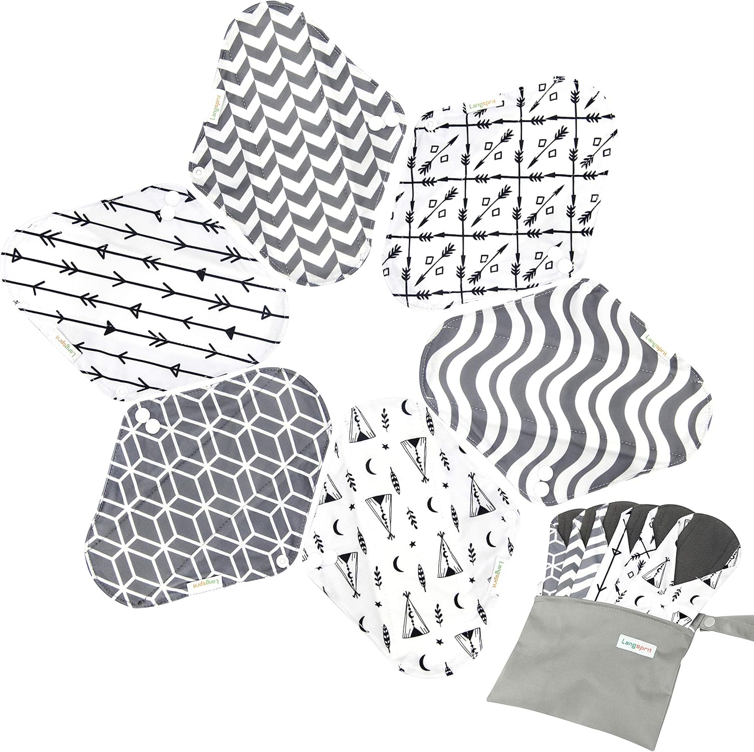 7pcs Set 1 pc Mini Wet Bag +6pcs Absorbent Reusable Sanitary Pads/Washable Cloth Menstrual Pads (L,Grey)