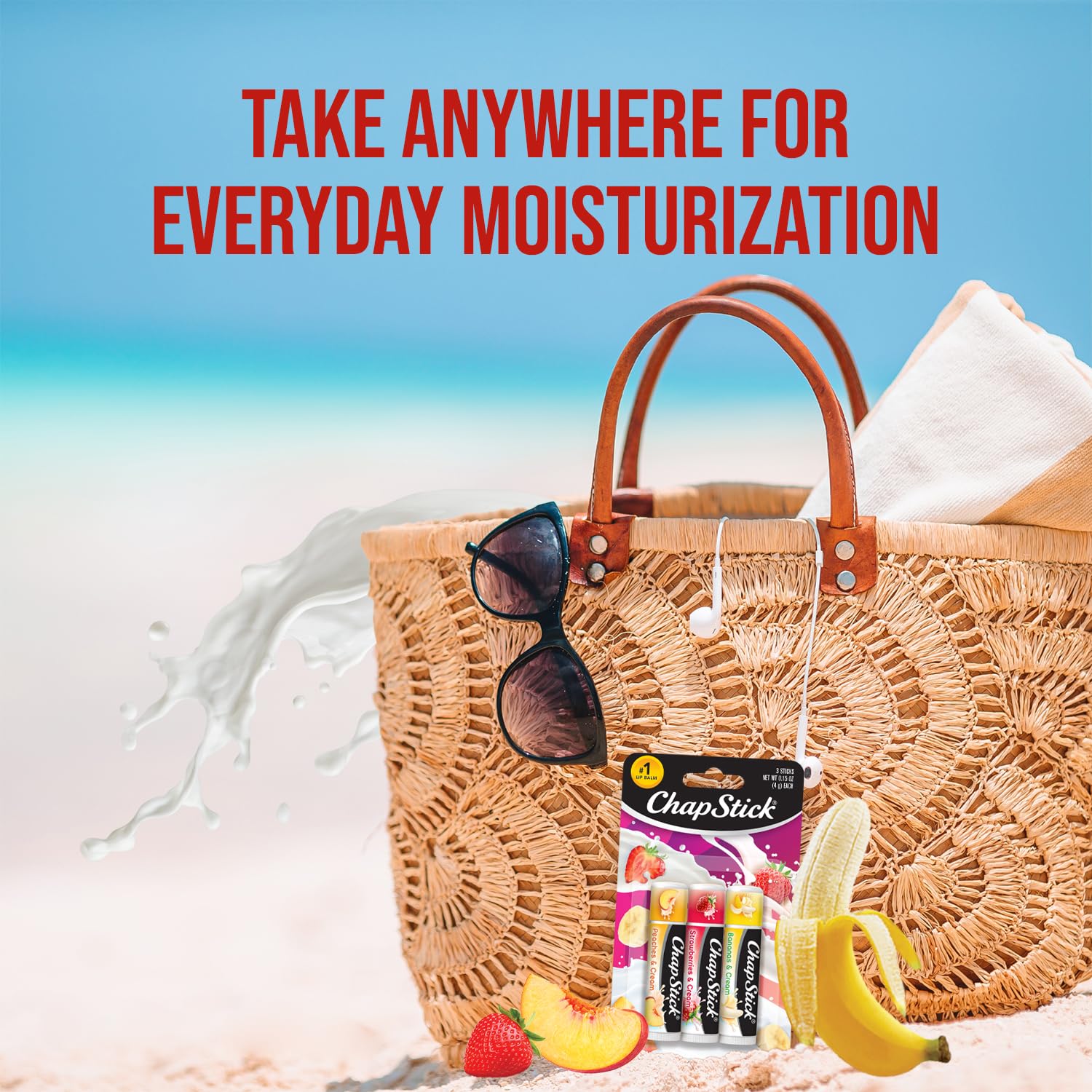 ChapStick Lip Balm Fruit & Cream 3-Pack Collection – Peach, Strawberry & Banana Flavors, 0.15 Oz Ea
