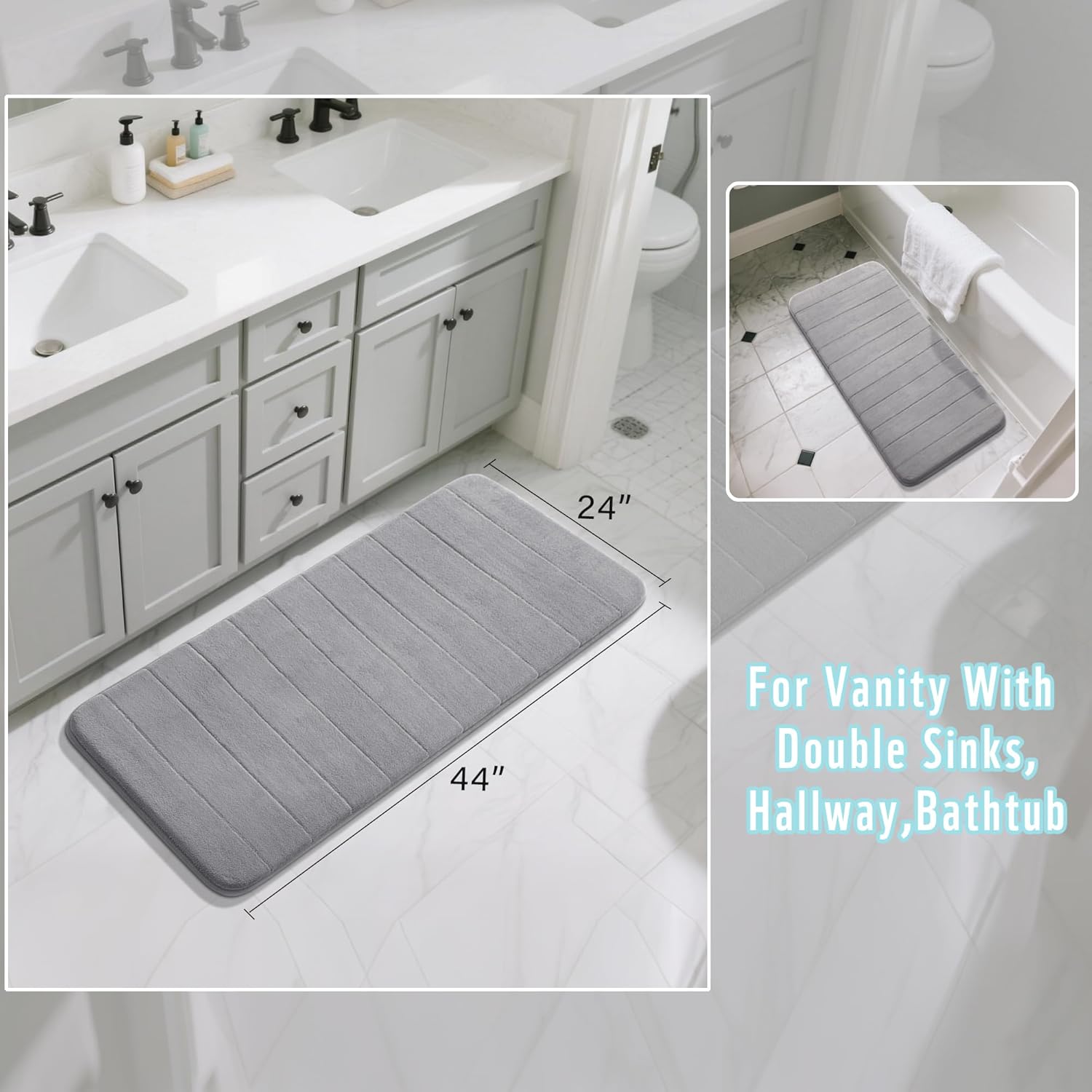 Yimobra Long Bath Mat 44"x24", Super Soft Quick Dry Memory Foam Bathroom Rug, Water Absorbent, Non Slip Backing Machine Washable for Tub Shower, Thick Comfort Support, Gray